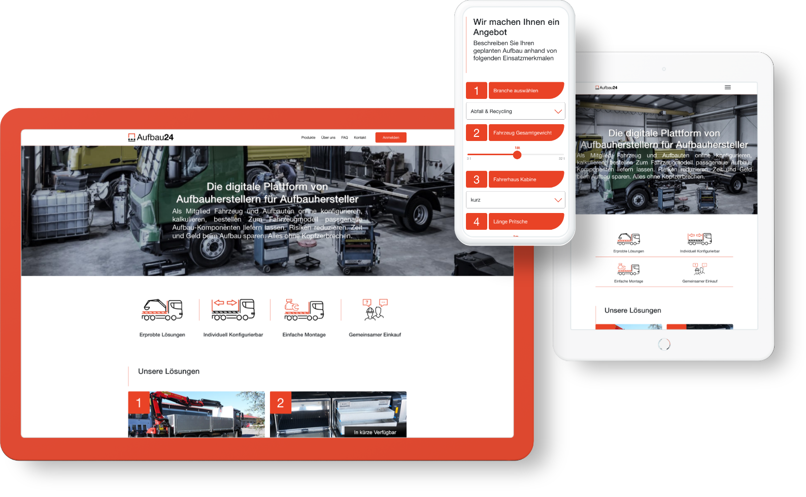 Aus einem Stapel Konfigurations-Excel-Dateien des Kunden ist eine Online-Plattform von Aufbauherstellern für Aufbauhersteller entstanden. e-pixler entwickelte einen Konfigurator, mit dessen Hilfe sich individuell gewünschte Aufbauten zusammenstellen lassen. Über eine kostenpflichtige Mitgliedschaft gelangen Interessenten in einen internen Bereich, in dem sie den Konfigurator nutzen, Anfragen stellen sowie ihr Firmenprofil verwalten können.