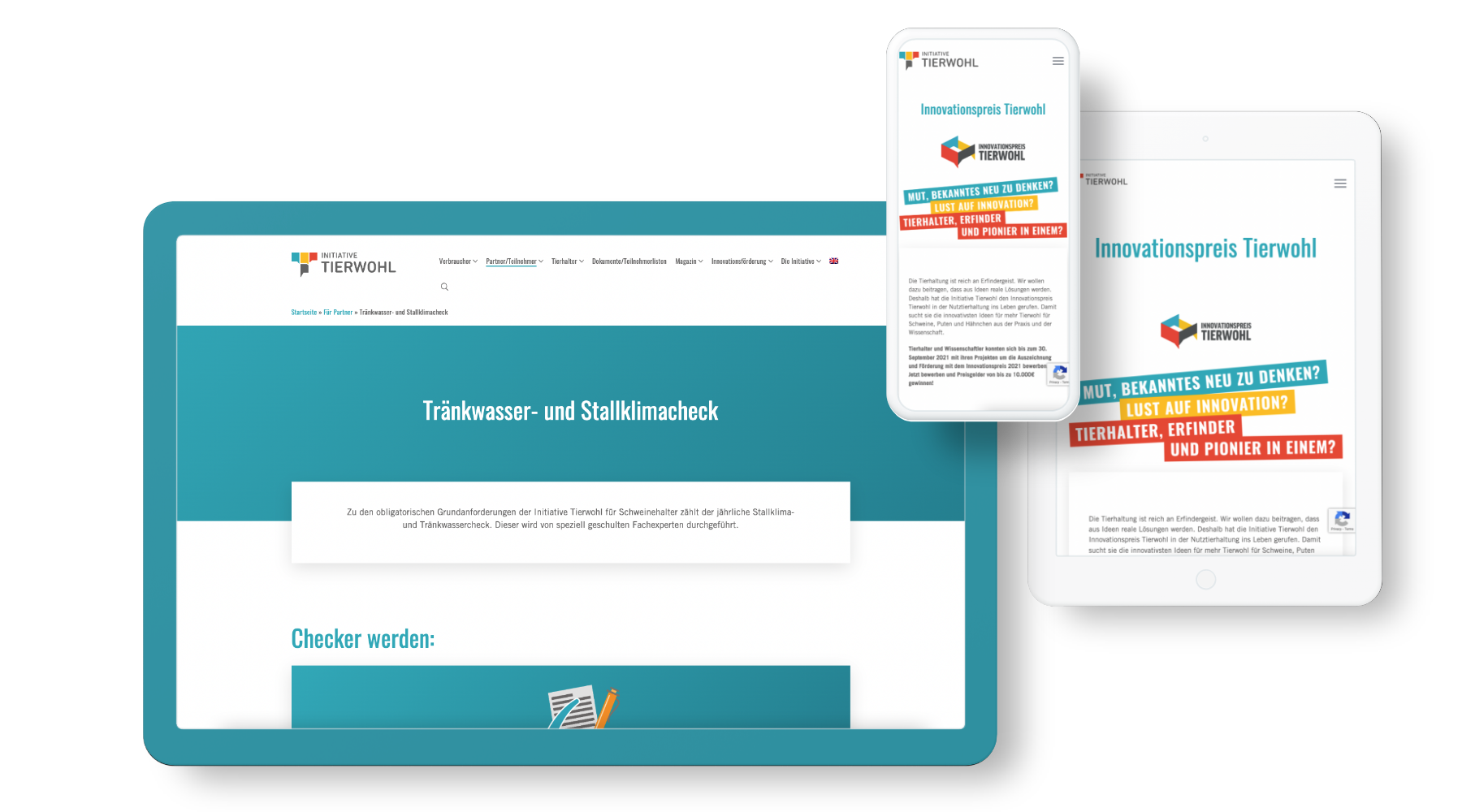 Für die Gesellschaft zur Förderung des Tierwohls in der Nutztierhaltung mbH hat e-pixler eine ansprechende Kampagnenseite entwickelt. Vorteil für die Zielgruppen: Dank klarer Strukturen findet jede Gruppe schnell Antworten auf ihre Fragen. Integriert und gut platziert ist ein Magazin, das aktuelle Themen aus dem Bereich Tierwohl aufgreift.